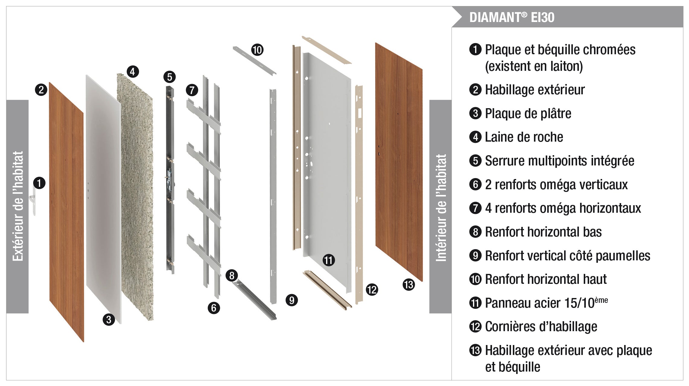 Mais la différence la plus marquante reste l’isolation phonique et thermique. Un blindage, même bien posé, ne pourra jamais rivaliser avec un bloc-porte haut de gamme comme les modèles Diamant de chez Picard Serrures, qui atteignent 80 à 90 mm d’épaisseur, avec des matériaux isolants intégrés. Sur une Diamant 30, on monte jusqu’à 47 dB d’isolation phonique ; les Diamant 10 et 20, avec option coupe-feu, offrent environ 44 dB. À l’inverse, un blindage classique reste en moyenne entre 20 et 30 dB, et n’est généralement pas testé officiellement comme les blocs-portes certifiés.